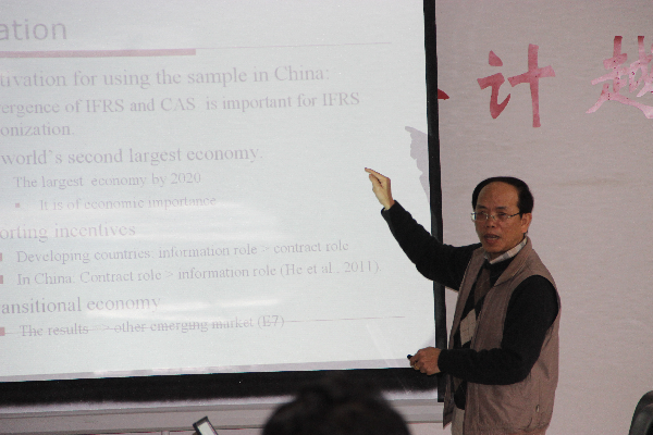 金成隆教授首先分析了中国IPO的异常现象,并深刻剖析这一现象出现的原因,还介绍了欧盟强制实施IFRS后的市场情况,以及IFRS实施后对四个方面因素正、反向的影响,并根据我国实际情况,分析了新会计准则的实施对国营企业和非国营企业、东部地区和中西部地区IPO上市的影响。此外,他还列举出一些研究方法,并鼓励大家发进行发散思维,作创新性研究。